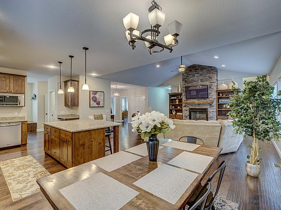 This beautiful rambler is the perfect place to call home. The open-concept design offers ample room for spacious living. Enhanced by an abundance of natural light, the living room boasts a stunning fireplace surrounded by gorgeous built-in cabinetry, creating an inviting atmosphere. Kitchen is a chef’s dream feat. oversized island, elegant granite countertops, & stainless steel appliances. Unwind in the luxurious owner's suite, complete with a cozy fireplace, deck access, & a sprawling ensuite bathroom & closet. Surrounded by majestic trees, enjoy the outdoors from the expansive backyard, or by the wood-burning fireplace in the 3 seasons room. Ample storage space w/ a 6 car garage; 3 car off main drive & wrap around drive access to addt’l garage below. Unfinished basement gives potential for nearly 3000 sqft ready to customize to your liking. Located on a dead end street, you’ll love the peace and privacy that this home allows.