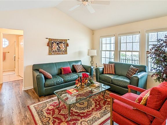 This spacious, well-appointed Condo, featuring 2 bedrooms, 2 baths and a 2-car garage, backs up to the beautifully landscaped pond/gazebo area located in the premier 55 plus condo association on Catawba Island. A wall of sliding glass doors in the great room open to a large wrap-around composite deck overlooking the pond/gazebo area. A gas fireplace adds beauty/warmth to the kitchen/dining/great room and a second fireplace adds a cozy ambiance to the master suite, which includes a whirlpool tub. Newer carpet and LVP flooring throughout as well as luxury woven blinds in the front rooms. All appliances are included. Furnace and A/C have been upgraded. The Vineyard Condominium Association features asphalt walk paths, golf cart path to Gideon Owen Wine Company, beautiful landscaped common areas, putting green and a community center with exercise studio, library and monthly planned activities. This condo is close to shopping/dining options and all attractions on Catawba and Marblehead.