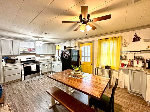 - Ceiling Fan(s), Walk-in Shower, Kit Counter-Formica, Sheet Rock, Paneling, 3 Bedrooms Same Level