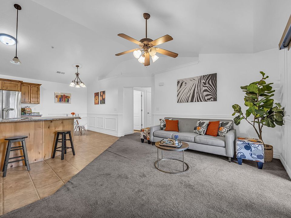 Top-floor condo with vaulted ceilings in the highly sought-after Belle Monet community-enjoy the privacy of no upstairs neighbors and stunning mountain views from two private balconies, including one off the master bedroom. Inside, you'll find vaulted ceilings and granite countertops that add style and charm throughout. The open layout is perfect for everyday living or entertaining. Community amenities include a pool, clubhouse, gym, theater room, and two beautifully maintained parks with playgrounds. With quick access to I-15 and just minutes from restaurants, shopping, and entertainment, this home blends comfort, elegance, and convenience. One car garage and one assigned open parking space. Square footage figures are provided as a courtesy estimate only and were obtained from county records . Buyer is advised to obtain an independent measurement. Click on the "Tour" button or https://www.youtube.com/watch?v=_HHA922I25k
