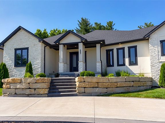 Built by Ironwood homes in 2018, this stunning property boasts 5 beds, 4.5 baths, over 5,800 sq ft finished, an oversized 4-car garage with 18 ft ceilings, and custom limestone retaining walls around the home. The gourmet kitchen features a double wall stove, commercial-grade refrigerator, gas range, and a spacious walk-in pantry. Enjoy quartz countertops on the main level and marble countertops in the lower level, along with a captivating live edge walnut top bar. The master suite offers a large en-suite bathroom with a double vanity and a generous walk-in closet. Tall ceilings create an airy ambiance throughout the home. Situated on a half-acre lot in a quiet neighborhood close to schools and entertainment. Relax on the covered deck with the maintenance free Trex decking and enjoy the large yard with an invisible fence already installed. The lower level surprises with a theater room, game room, and a large gym/dance studio. Experience luxury and functionality in this remarkable home.