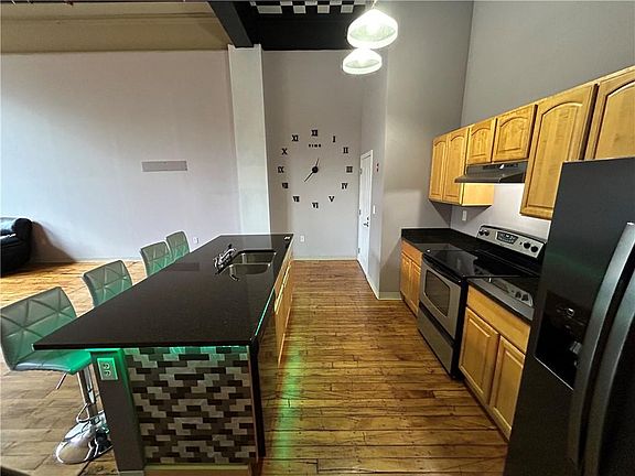 Loft style condominium in excellent condition. High ceilings with tall windows and hardwood floors, large island with granite countertops and newer stainless steel appliances and new paint. Wide open design with elevated bedroom area and plenty of storage space, with washer and dryer in unit. Additional storage included with 15' x 12' designated secured containment area in basement of building.