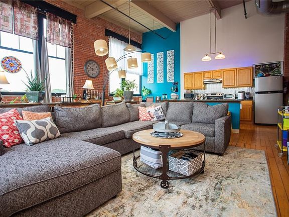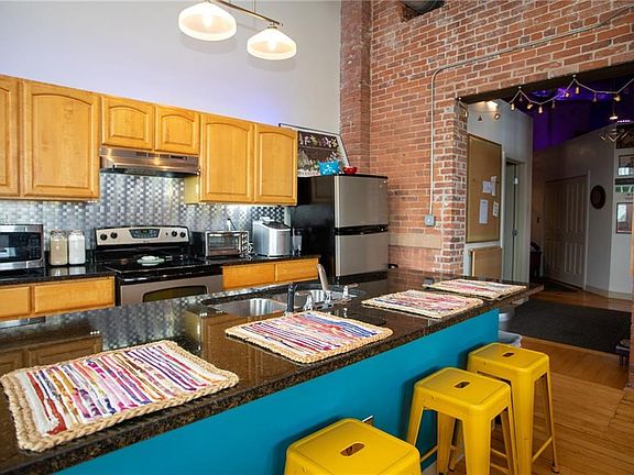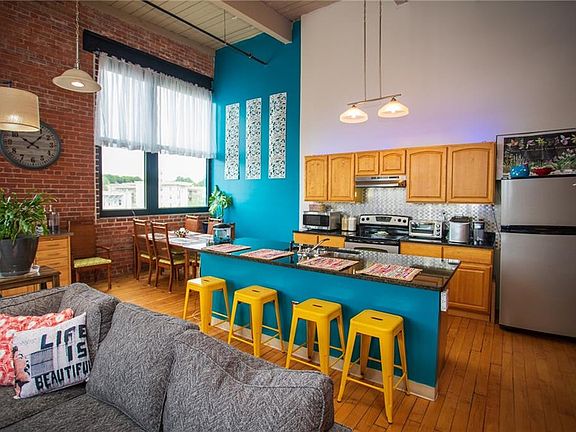 Welcome home to Gateway Commons! One of Woonsocket's most beautiful and tastefully done mill conversion residential properties.This spacious 2 bedroom, 2 full bathroom top floor, corner unit boasts lovely City views. This amazing space has airy 15' wood beam ceilings, exposed brick walls, gleaming hardwood floors, large windows throughout that allow an abundance of natural light, gas heat, central air and laundry in the unit. Gateway Commons is a great place for commuters, it is close to the Franklin and Attleboro train stations and minutes from routes 146, 295 and 95. There is ample unassigned parking for residents and guests. This unit also has a huge, secure storage space in the basement, a dog park for your best friend, and a gym that all residents can utilize. Property allows pets. Monthly condo fee includes water, sewer, trash removal, interior and exterior building and grounds maintenance, snow removal, use of dog park and gym. Building security features keyless entry and camera monitoring. Why rent when you can own for less?