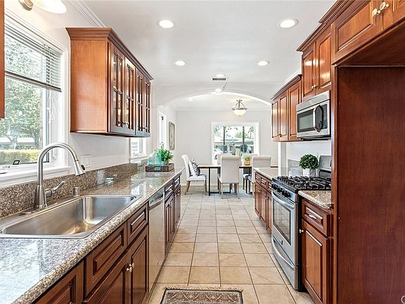 Charming, single level home in the historic district of Old Town Tustin! The exterior welcomes you immediately from the white picket fence, laced with jasmine to the slate walkway, onto the quaint front porch with brightly painted front door. Upon entering revel in the nostalgia of original hardwood floors, crown moldings and a spacious floorplan. The updated galley kitchen has stainless steel appliances, granite countertops, new sink and faucet and plenty of storage space. Laundry room is conveniently located off the kitchen. The entire house has been freshly painted: interior and exterior. There are 3 light, bright bedrooms each with closet and built-in overhead cabinets. There's 1 beautifully appointed bathroom with new vanity, Carrera marble countertop and shower/bathtub combo. The backyard is every homeowner's dream. Entertain on your new Trex deck and over 7000 square feet of beautiful grass and trees. Two large planters are ready for your next vegetable, herb or fruit garden! There's a long driveway for parking, in addition to a detached 2-car garage with extra space for storage. Home is within walking distance to Old Town shops and restaurants. There are nearby schools, parks and has close freeway access (without the noise)!