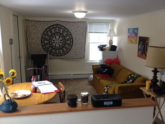 Welcome to this charming 4-bedroom rental unit - top half of a duplex, perfectly situated on the 2nd and 3rd floors for increased privacy and reduced noise. Enjoy the tranquility of wooded surroundings while being just under 10 minutes from UMass Amherst and Town Center, also just down the street from Hampshire College. This spacious home features an eat-in kitchen, a cozy shared front porch, and a bright, airy 3rd floor that includes an extra living room and a separate office. With lawn care, trash/recycling, and water/sewer included, as well as four off-street parking spaces included, you'll have everything you need for a comfortable lifestyle. The free bus stop for routes 36 and 38 is right out front, making commuting a breeze. Ideal for a group that appreciates the extra space the unit offers (maximum of four occupants please). This inviting 4 bedroom Amherst rental is ready for you to call home schedule your viewing today!