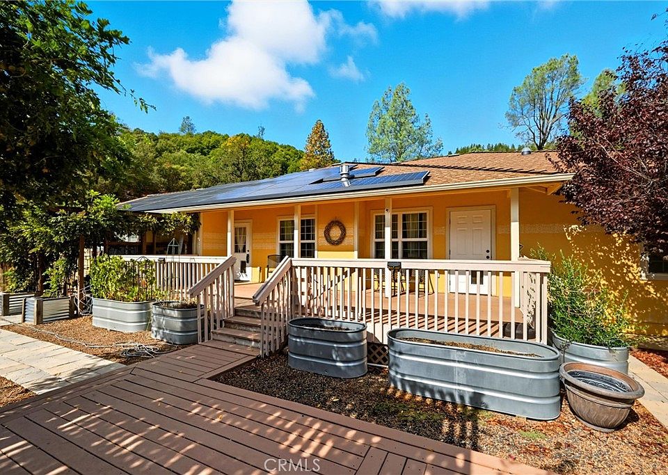 Private Mediterranean Retreat on 33 Acres with Sweeping Mountain Views! Welcome to your dream estate — a meticulously maintained, single-level Mediterranean-style home nestled on 33 acres of private, picturesque land. With three bedrooms, two bathrooms, a dedicated office, and nearly 3,000 square feet of thoughtfully designed living space, this home offers the perfect balance of luxury, comfort, and nature. Step inside to discover a spacious open floor plan, filled with natural light and seamlessly flowing from room to room. Multiple doors open onto expansive decks, inviting the outdoors in and providing effortless access to stunning views of Cobb Mountain and the valley below. The chef’s executive kitchen is a culinary delight, featuring premium appliances, generous counter space, and a layout perfect for both entertaining and everyday living. Outside, the lifestyle continues with beautifully landscaped grounds including 10 grapevines (featuring Italian varietals and Perletti grapes), apple trees, elegant cypress trees, and a variety of trees and flowering plants — all supported by a comprehensive drip irrigation system. Enjoy the ambiance of the wisteria-covered arbor, ideal for alfresco dining or a relaxing glass of wine. For those seeking self-sufficiency and serenity, this property includes a level area with corral and additional storage building, fully fenced outdoor living spaces, a fully connected Generac generator and Firewise protection: hardy board siding and 100-foot defensible space for peace of mind. Located in a friendly neighborhood of acreage properties, you'll enjoy a secluded setting with unmatched privacy — and still just a 5-minute drive to town amenities. Whether you're looking for a quiet retreat, a hobby vineyard, or a place to entertain and enjoy nature, this property offers a rare opportunity to live the lifestyle you've been dreaming of.