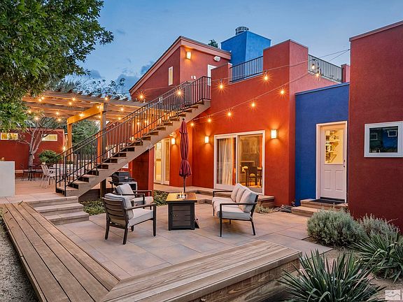 Imagine living in a home worthy of Architectural Digest. Located in the heart of Hidden Valley, this one-of-a-kind artistic gem was created by Cathexes Architects. The contemporary design is unique inside and out, with a comfortable and inviting floor plan. The incredible park-like backyard showcases mature trees and landscaping that should be celebrated. The lush yard is the perfect backdrop for memorable parties on the amazing rooftop deck., Enter by the calming fountain into a unique and dramatic interior. The living room showcases the wood beamed vaulted ceiling with artistically placed windows letting in beams of light. The beautiful original 1962 oak floors gleam throughout most of the living spaces. The comfortable space opens to the kitchen and dining rooms, with glass doors to the stunning backyard. A three-sided fireplace separates the living and dining rooms. Custom steel fireplace surround creates a modern sculptural focal point. The true chef's kitchen welcomes you with its miles of black granite counters and abundance of cherry wood cabinets. The breakfast bar is lit by striking pendant lights and the center island houses the 5-burner gas Thermador cooktop. A Sub-Zero refrigerator, Bosch dishwasher and Thermador oven, warming oven and microwave all help make your kitchen experience top-notch. The kitchen sink is surrounded by corner windows overlooking the front yard. Soothing colors and the air vaulted ceiling promote a restful sleep in the tranquil primary suite. Glass French doors open to the back deck and lush yard. An extra tall and spacious walk-in closet is ready for all your apparel. The primary bathroom features a deep Jacuzzi style tub, two sinks, stunning lighted mirrors and a shower with plenty of elbow room. Both secondary bedrooms have vaulted ceilings, large closets and glass French doors. One leads to a front patio. The other leads to a private, enclosed, fully-landscaped side yard perfect for quiet reflection or for use as a secure dog run. The bedrooms are located on the opposite end of the hallway from the primary bedroom. Additional home features include: custom blinds and curtains; Ring alarm system; built-in stereo speakers inside and out and recessed and spot lighting. A large mud and laundry room is located between the house and the garage. It boasts a Whirlpool Duet washer and dryer that is included in the sale, extensive, custom designed Elfa storage system, a sink and door to the backyard. The two car garage also showcases an Elfa storage system, cabinets and new custom garage doors with Liftmaster openers. In the back of the garage is a separate workshop or storage room. Next to the garage is generous RV parking located behind a newer wood gate and fence. Then there is the absolutely stunning backyard, truly a magical place. It's the ideal place to host family and friends! A multi-level deck with different entertaining areas, built-in seating and both covered and uncovered areas overlooks the park-like yard. Mature trees, including a variety of fruit trees, offer lots of shade. The beautiful lawn meanders through the trees with rock and stone pathways and garden beds. In a sunny corner, through a trellis, you'll discover garden boxes for vegetables or flowers. There's a custom storage shed that matches the house, too. Venture up the stairs over the patio to enter the rooftop deck where you can enjoy sweeping views of the city, valley and mountains. The vista is especially beautiful in winter when the trees have dropped their leaves. It's also a great place to stargaze. The front yard showcases a large paver driveway; mature, low maintenance landscaping; a custom water fountain, private front patio and artistic walkways. Recent upgrades to the home include: NEW Milgard windows (2022). All windows were replaced except sliding glass and French doors that are in excellent condition.; NEW stucco and exterior paint (2022); NEW fiberglass front door with frosted glass (2022); and