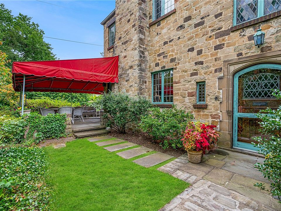 Discover this stunning stone residence located on one of Pittsburgh's most desirable streets. The elegant entryway leads to a breathtaking foyer featuring a beautiful spiral staircase and soaring ceilings. The expansive living room boasts a charming fireplace, exquisite detailing, and double doors that open to a lovely private patio and backyard. On the first floor, you'll also find a formal dining room, updated gourmet kitchen, and a cozy den. The second floor offers five spacious bedrooms and two beautifully updated bathrooms, including a lovely primary suite with a walk-in closet and a luxurious en-suite bath. The third level provides additional versatile space perfect for an office, game room, or more. The spectacular outdoor gardens are a true private oasis. Additional amenities include stained glass windows, beautiful built-ins, incredible natural light, central air, a two-car garage, and so much more. Enjoy an ideal location just blocks away from Frick Park and Bakery Square.