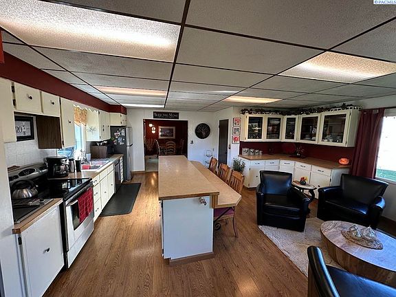The opportunity you've been waiting for! A quiet country home on a few acres just minutes from the quiet town of St. John, offering excellent schools and downtown businesses. This charming turn of the century farm home boasts a spacious kitchen with island seating great for entertaining and family gatherings; and a covered patio where you can enjoy the rural lifestyle. This generous 3 acre property features mature trees and landscaping, a large garden, plenty of parking, and a 2 car garage. Make your rural dream a reality, schedule your appointment today to explore this amazing property, these opportunities are getting hard to come by. Open concept kitchen with bar seating and plenty of room for conversation, complimented by a spacious living dining space.