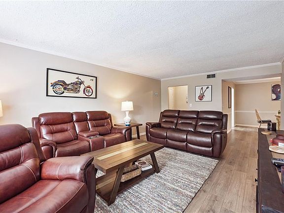 Step into seamless, single-level living at this beautifully updated condominium. This move-in ready home features a bright, open floor plan highlighted by high-end laminate wood floors and a stunning kitchen. Enjoy cooking with sleek quartz countertops and newer appliances, then unwind on your own private patio. The spacious primary suite boasts a generous walk-in closet, while a versatile third room with built-ins offers the perfect space for a home office, den, or guest room. This is a probate sale.
