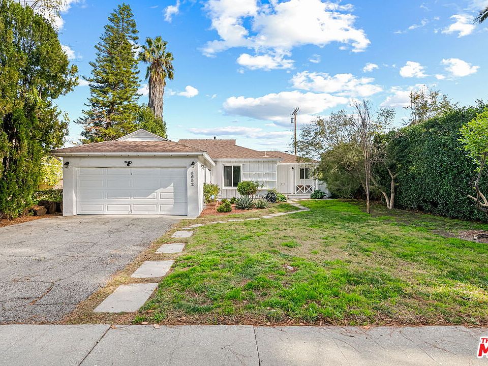 1950's ranch style 3beds-2baths,beautifully updated home is in a quiet neighborhood on a tree lined street! Enormous living room with sunken family/dining area with a wood-burning fireplace. New modern kitchen with a breakfast area. Spectacular new master bath. Gorgeous hardwood floors throughout. Newly landscaped large backyard with nice patios is perfect for summer BBQs, and offers a mature fruit-bearing orange tree. The two car garage contains built-in storage. Newer C/air and heat, mostly copper plumbing throughout and alkaline water system in the kitchen. Conveniently located less than 1 mile from the orange line bus, and bike path. Easy to show. Living Trust Sale.
