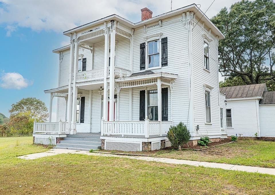 UNBELIEVABLE 1880's FARMHOUSE tastefully restored & updated, you won't believe the beauty in every room! GORGEOUS wood floors, high ceilings, central heat & ac (4yrs old), exposed beams and brick, full-length windows with plenty of natural light. HUGE formal dining room, museum-quality period era kitchen, all bedrooms nice and roomy and refinished stunningly. YOU HAVE TO SEE THE MASTER BATHROOM / WALK-IN CLOSET with plenty of room for hanging clothes, an expansive island storage cabinet counter, stretched wide walk-in shower, and freestanding tub! Upper balcony overlooks neighboring farmland and community. This commanding home sits on almost 3 acres of level land, filled with storage buildings, shop, wellhouse, chicken coops, tobacco cabin and much more!