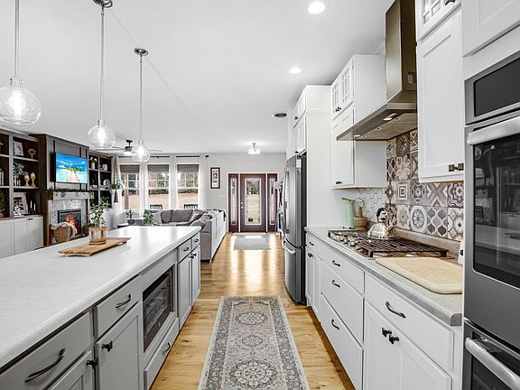 Looking for a beautiful newer home AND acreage? Check out this stunning home on over 5 acres of beautiful landscaping and a pond. This modern home has a generator, wood flooring, a gas fireplace, stunning built-in cabinets and entertainment area, large open concept living room and kitchen/eating area, stainless steel appliances, a HUGE main bedroom with an attached and spacious main bathroom, a large covered deck overlooking a garden area and the beautiful trees. The large 3 car garage is another great feature and allows for plenty of storage for the vehicles and the toys! Don't miss the opportunity to make this sanctuary your own. Schedule your showing today!