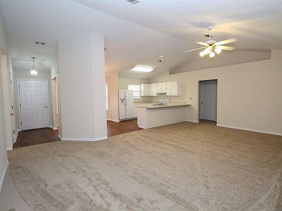 Contemporary open floor plan in this 3 bedroom 2 bath home close to Whiting Field in the Cedar Ridge subdivision in Milton. This brick home features a 2 car garage, privacy fenced back yard, front porch, and back patio. Beautiful wood flooring in the foyer, dining, and kitchen. The open kitchen, dining, and living room have a vaulted ceiling, plant ledges, and lots of natural light. The spacious kitchen has lots of cabinet and counter space and includes a refrigerator, electric stove, and dishwasher. Inside laundry with a washer and dryer for your convenience. Popular split bedroom floorplan with a large walk-in closet in the primary bedroom as well as a private bath. Pet friendly home with owner approval and $250 non-refundable pet fee per pet. (Aggressive breed dogs will not be considered). This home is currently occupied and will be available for move-in on October 14, 2020!