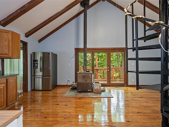 Welcome to 6855 Conesus Springwater Rd located on 4.5 acres between Conesus and Hemlock Lakes! Whether you're looking for a year-round home or recreational use, this contemporary ranch has it all! The open-concept space features a country kitchen with lots of storage. A cozy living room with a woodburning fireplace and the dining room is ideal for family meals or entertaining guests. There are 2 bedrooms on the first floor and a third in the loft. The walkout lower level can be a family room or an additional bedroom! The 2 spiral staircases and vaulted ceilings elevate the experience! Step outside to the Trex deck overlooking the amazing, wooded yard, perfect for relaxing! 2023 metal roof and 2024 gleaming, refinished pine floors! This tranquil setting is ideal for outdoor enthusiasts and hunters, where you’ll frequently see deer, turkey, fox, and more. And there is even a stream for fishing! Experience the beauty and serenity of this unique property and don’t miss the opportunity to make this peaceful retreat your own home or a lucrative investment property!! Delayed negotiations till 7/17/24 at 10:00 am. You can be in before fall when the foliage is spectacular!!
