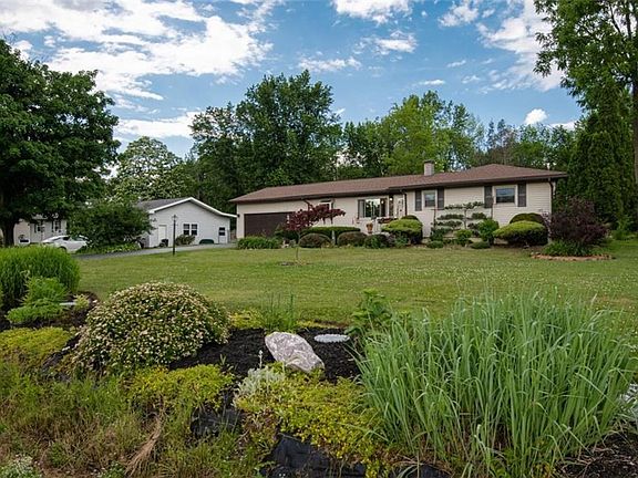 If a well-maintained RANCH with a 2-car garage, open floor plan, family room addition, heated & insulated sunroom, wrap around deck, koi pond & hardwood floors on 8.5 acres is something that interests you, I would encourage you to schedule a showing promptly. Roof (5-7 years old), High-efficiency furnace & central A/C (2012), Water Heater (2012), updated 200 amp electric, Driveway sealed (2019), Updated vinyl windows & siding, gas fireplace. Main level laundry & office. Full basement with B-Dry system has lifetime transferrable warranty. Seller had pre-listing inspection. Radon was tested & passed. (Square footage is higher than tax record reflects). Survey is available & will be displayed for showings.