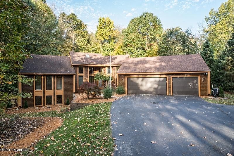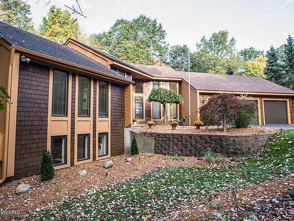 Nestled at the end of a quiet drive in the Forrest Hills school district lies this spectacular 4 bed 3.5 bath ranch home. A large wooded lot offers a safe feeling of privacy, while the window lined walls let in an abundance of sunlight. Coupled with a spacious open floor plan of 3,560 sq. ft. and high, wood paneled ceilings, one feels as if they can really breathe here. The main floor offers a newly renovated kitchen with granite countertops and oak cabinetry, a stunning master suite, and a wood ed deck. A finished walkout lower level contains more cozy living space, while an unfinished room allows for room to grow. Located seconds from Cascade Twp. Park & the Thornapple River, the surrounding nature beckons you to take leisurely walks with your loved ones.