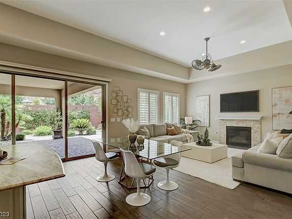Experience life at its finest at Toll Brothers Regency in Summerlin! This community offers the best of everything with resort style amenities and luxury homes! Majestic mountain views surround this home to be enjoyed from the spacious front courtyard to the lushly landscaped backyard with a large covered patio & fruit trees! Inside the gourmet kitchen with ample counter & cabinet space is a cooks delight! The vaulted ceilings and large sliding glass door make the living spaces truly bright & airy. No expense has been spared in the upgrades throughout the home including the beautiful primary bath with a large walk in closet & organizers. The garage has highly upgraded builder cabinets & a finished floor! You will love living in this active community, schedule your tour today!