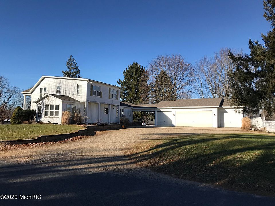 Sitting on almost an acre this corner home has some great features. There is a large kitchen with custom island flares and center range, family room with mosaic stone fireplace, double size living room with lots of windows, spiral stairs lead you too the light and spacious rooms.. Large 4 car garage with heat and downstairs storage unit under that! Covered breezeway gets you from the garage to the house keeping you dry.