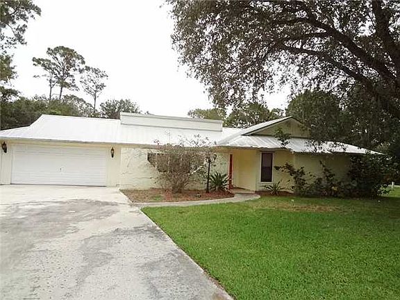 The setting reminds you of Hilton Head Island with the home nestled among large oak trees. Big corner lot, laminate, granite, newer kitchen cabinets, large screened pool, underground utilities, VOLUNTARY HOA (membership entitles members to use boat launching ramp), some accordion shutters, metal roof, front door has hide-a-screen to catch the breezes off the river a few blocks away. Yes, some TLC required, but you have a great start.