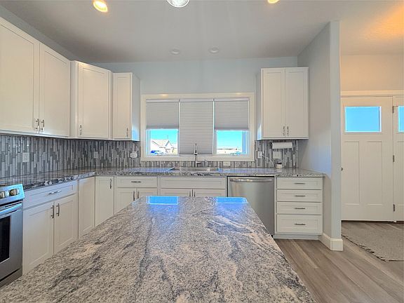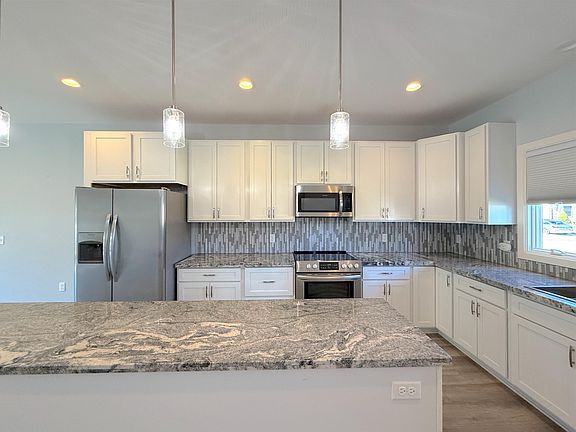 Welcome to this beautifully finished ranch-style home, built in 2020 and designed for modern living with an open, spacious layout. The main level features a bright great room with vaulted ceilings and a patio door to a deck overlooking the backyard. The kitchen offers a generous island, granite countertops, stainless steel appliances, tile backsplash, and plenty of cabinet space—perfect for cooking and entertaining. The primary suite includes a private bath and walk-in closet, and two additional bedrooms, a full hall bath, and main-floor laundry complete the main level.