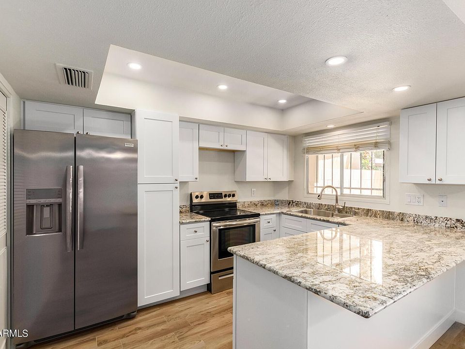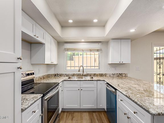 Fall in love with this beautifully remodeled and inviting rental townhome! Step inside to warm wood-look tile floors and a spacious, open living area ideal for relaxing or entertaining. The upgraded kitchen features stainless steel appliances, granite countertops, recessed lighting, a pantry, white shaker cabinetry, and a breakfast bar on a stylish peninsula. The primary bedroom offers a peaceful retreat with a walk-in closet and private ensuite bath. Enjoy the low-maintenance backyard with a covered patio and storage shed perfect for outdoor living. This home also comes with two assigned covered parking spaces. Community amenities include a sparkling pool for year-round enjoyment. Experience this charming home near Old Town Scottsdale for yourself!