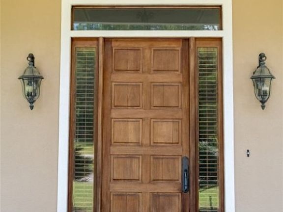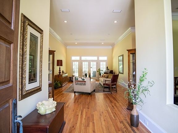 Beautiful private gated home on over 11 acres. Enter through the custom solid wood front door to a spacious open living, dining area. Large bright eat-in kitchen with granite counter tops, double wall ovens and a sub zero custom panel refrigerator! A gorgeous stained glass door leads you into the family room that includes vaulted ceilings, custom built-ins that lead to a secret room, huge windows and an incredible stacked stone fireplace wall! Ornate chandeliers compliment the spacious bathrooms. The private master bedroom includes a wall of windows, 3 closets and a jetted garden bath tub! Gorgeous hardwood floors throughout, plantation style shutters on windows. Extra tall ceilings, crown molding and intricate trim work make this home GRAND! 3+ car garage. Large covered porch out back perfect for grilling and relaxing! This one is a must see!!