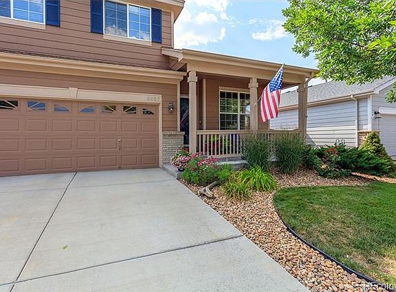 Meticulously maintained home in Wildcat Ridge. Three bedroom, 3 bath with Open Kitchen Family Room area, also formal Dining Room and Living Room as you enter the home. This beautiful home has been updated with Acacia Hardwood Floors and 20\" Porcelain tiles thoughout the Kitchen/Family areas and all bathrooms. Kitchen has all stainless steel appliances with Dual Gas/Electric Double Oven. Maple Cabinets with Silestone Counters. The backyard feels like an oasis with large covered patio with sun shades and ceiling fan, overhang with gutters and dual gas grill hookups. 8 Man Hot tub also included. Raised vegetable garden bed and beautiful landscaping. New Roof, driveway, exterior paint and back patio door in 2014. Utility Shed and Work Bench in Garage also included. You will not be disappointed in this well maintained updated home which is close to biking/walking trails. Wildcat Ridge is a sought after community with its own community pool and great Douglas County Schools.