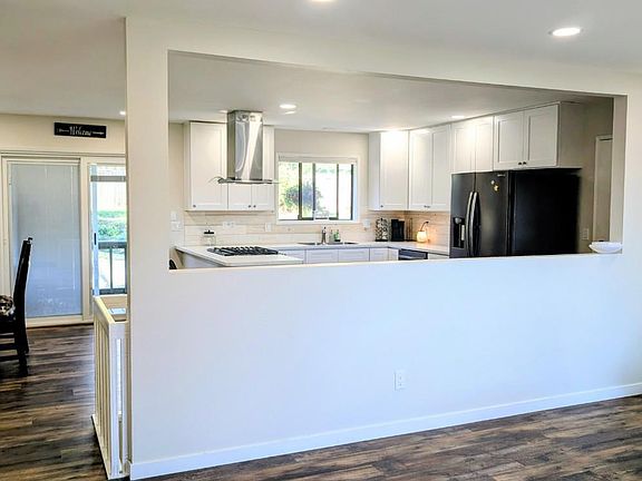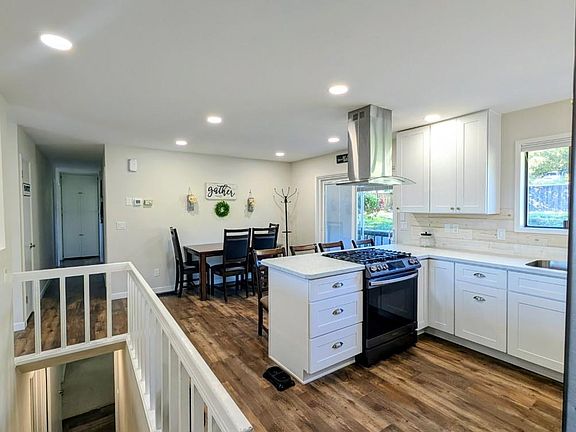 Remodeled abodeFlowering shrubsFarmstead backsplashExquisitely crafted gourmet kitchenStainless steel appliancesExpansive picture window