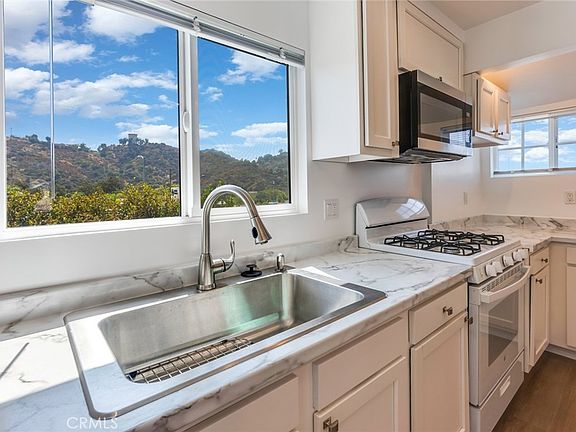 Come home to this light and bright top-floor gem with its own address: 6858 1/2 Quinton Ln. in Tujunga, freshly remodeled and filled with breathtaking VIEWS from every room! Step out onto your spacious PRIVATE PATIO to relax or entertain. This unit boasts a chef's dream kitchen with ample counter space, gas stove, microwave hood, and refrigerator all ready for your culinary adventures. Inside, you'll find a brand-new WASHER & DRYER conveniently tucked into a laundry closet. The bedroom offers generous space with two large closets, and the sleek, modern bathroom features a relaxing tub/shower combination. Enjoy peace and quiet with double-pane windows, new blinds, and durable luxury vinyl plank flooring throughout. ONE PARKING SPOT is right in front of the house, and you'll love living on a calm residential street that's just minutes from shopping, restaurants, and freeway access. Make every day feel like a retreat in this stylish duplex!