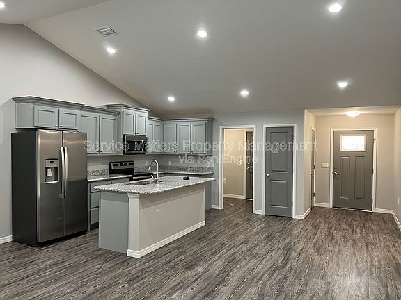 Granite countersSeparate bathroomsOpen floor planWood laminate flooringCovered patioCool colored cabinetryStainless appliances