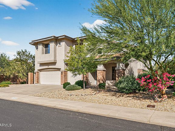 Set on a cul-de-sac in Sonoran Mountain Ranch, this 6-bedroom, 4.5-bath home offers space, privacy, and mountain views. Inside, soaring ceilings and a grand spiral staircase make a striking entrance. Your main-level primary suite provides ease and separation. While upstairs includes 2 generous lofts and a secondary suite with its own bathroom and walk-in closet: perfect for guests, multi-gen living, or a teen retreat. The great room and kitchen, with a large island, anchor the home for gatherings and everyday life. Step outside to a two-year-old pool, no neighbors behind, and a wash to the west for rare seclusion. With a 3-car garage and RV gate, paired with the highly rated Deer Valley School District, this home brings together practicality, flexibility, and setting in one rare find.