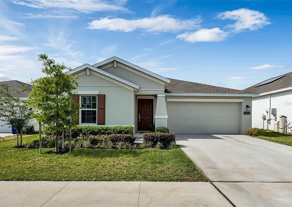 Don't wait to build when you can secure this better-than-new home! Welcome to this charming 3 bedroom, 2 bathroom Dover model home in the Trinity Lakes community. This great home is 2 years old and has been meticulously maintained. The functional floor plan opens to a large space accommodating the family room, kitchen and dining room. A kitchen island is perfect for quick bites as well as making entertaining guests effortless. The spacious master suite is positioned at the back of the home and offers dual sinks, a large walk in closet and walk in shower. Two secondary bedrooms are located at the front of the home and share a full bath. Home is equipped with energy-saving solar panels. Trinity Lakes is a lakefront community offering residents amenities that include: resort style pool, park, playground, dog park, clubhouse, and fitness center. Call today to schedule your appointment!