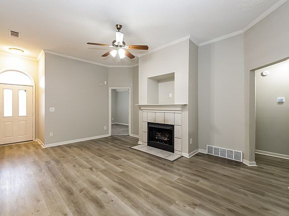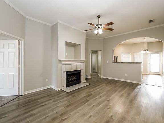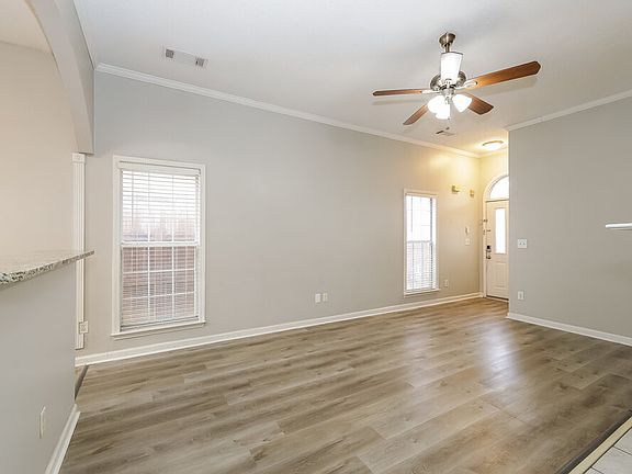 This move-in ready brick rental home in Cordova, TN features three bedrooms, two bathrooms, and a rear attached garage. The living room is ideal for entertaining guests around a cozy fireplace and features a media cutout, as well as a lighted ceiling fan. The gorgeous plank flooring adds a rustic feel. An arched doorway leads to the eat-in kitchen, where you'll see lots of cabinetry, stainless steel appliances, and a chic chandelier to dine under. Carpeted flooring and a high ceiling in the primary bedroom create a comfortable environment. You can soak in the garden tub or have a quick wash in the walk-in shower of the en suite bathroom. Call to schedule a tour today.