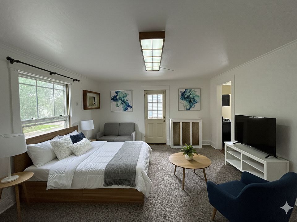 Move into this updated studio with a private entrance and spacious outdoor patio. Inside you'll find a brand new kitchen with modern cabinets, butcher-block counters, tile backsplash, and new appliances (stainless refrigerator, gas range, microwave). The bathroom is fully renovated, and the open living area has fresh paint, new carpet, and plenty of natural light.