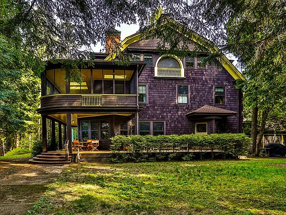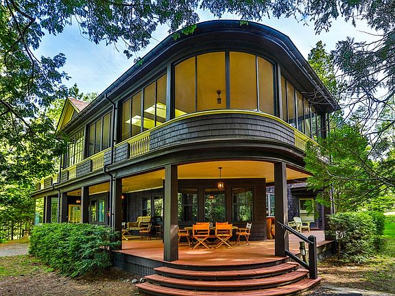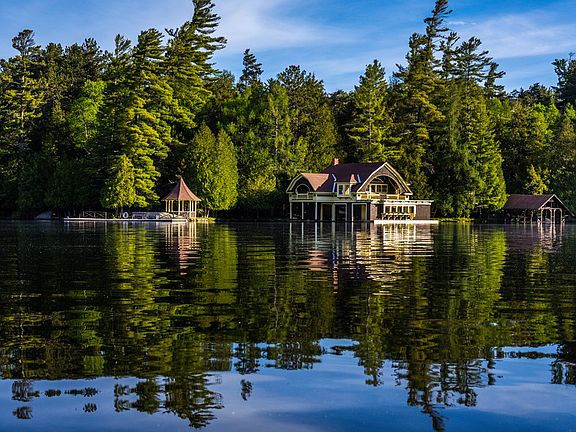 A gracious treasure on the shore of Upper Saranac Lake. Originally built in 1898 by Robert Dun Douglass and later purchased by Alix Stanley of "Stanley Tools," Camp Dancing Waters has been preserved in impeccable condition for over 115 years. Its signature boathouse has 2 unprecedented drive-through slips together with a distinguishing eyebrow roof dormer. The property is comprised of 24.5 acres of land and 1,200 FT of shoreline on Douglass Point with level access to the water and exceptional lake and mountain views. The main camp offers roughly 6,000 SF of living space including 7 bedrooms, 4 fireplaces, wrap-around porches, glass bowed sunroom, formal dining room an attached 2 car garage