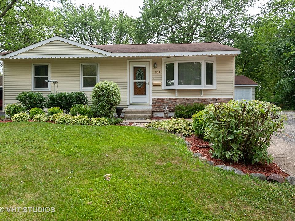Adorable ranch home with full finished basement doubles the living space. Lots of updates including new carpet in master bedroom, basement bedrooms, new 6 panel doors and exterior doors. Eat in kitchen with quality wood cabinets and breakfast bar. Updated bath with Italian stone surrounding tub, new lighting, fixtures and granite sink. Finished basement with large rec room , two additional rooms and full bath. Laminate floors in living room, second bedroom and rec room. Largest lot in Larkdale! Beautiful yard with terraced patio and zen garden. Oversized two car garage perfect for car enthusiast, workshop or storage. Park with children's playground at end of street. Maytag washer and dryer.