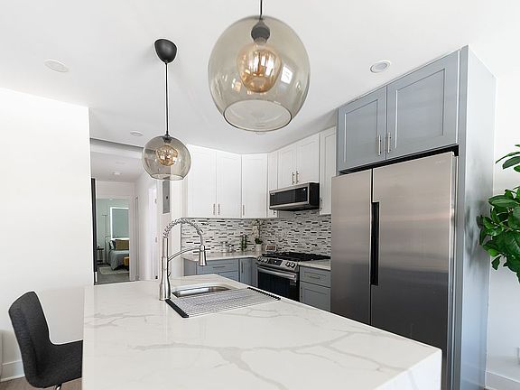 Welcome to 686 Crescent Street, a fully renovated two-family townhouse nestled in the vibrant community of East New York, Brooklyn. Step into the owner's suite, where luxury and comfort abound. This sanctuary boasts three bedrooms, each meticulously designed with Frigidaire and Whirlpool stainless steel appliances, including a sleek electric stove, refrigerator, and dishwasher. The kitchen is a chef's dream, featuring marble countertops, ample cabinet space, and a spacious island perfect for entertaining guests or enjoying intimate family meals.