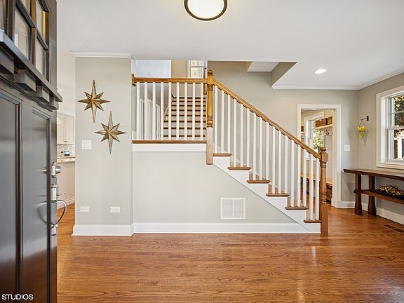 This fully renovated home in a prime East Winnetka location has been completely gutted in 2015 and is set on an extra wide lot (61x120). The renovation included an expansion on the first floor, and a completely reimagined brand-new second floor. The stunning chef's kitchen, featuring a walk-in pantry, island, and breakfast area, seamlessly flows into the great room. Through sliding barn doors you'll find a large office (BR 5) with full bath. A separate mudroom entrance includes a coat closet for added convenience. The second floor features four sunny bedrooms and a spacious laundry room, with beautiful hardwood floors throughout. With a modern floor plan in a walk-to-everything location-just steps from the train, town, parks, and the lake-this home is a must-see!