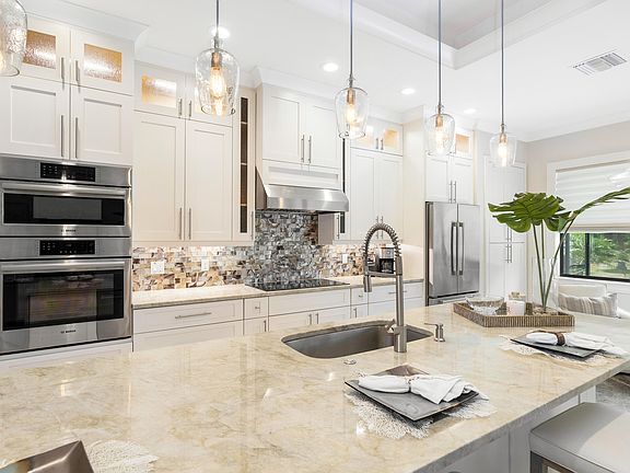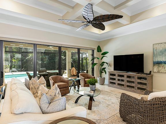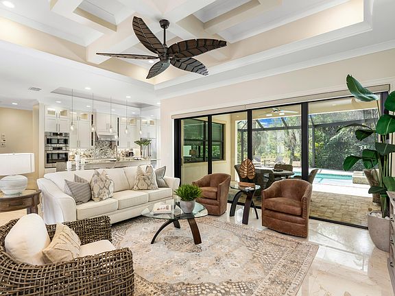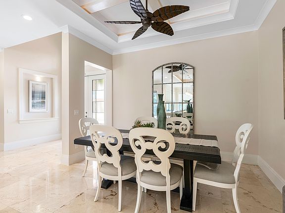 THIS SPECTACULAR, INLAND HOME, IS CLOSE TO TIGERTAIL BEACH On Marco Island! It Shows like a model. Built in 2016, with over 2700 sq. ft of air conditioned space. 4 bedrooms, plus a den, 3 full baths, Pool and Spa, and a 3 car garage. Walk in, to this Beautifully designed, open floorplan. Look up, and enjoy the beautifully designed, coffered ceilings in the Great Room, Dining room, Kitchen and the Master bedroom. The gorgeous Crema Marfil marble floors are throughout the home. Gorgeous TajMahal, exotic granite, in the kitchen, with a breakfast bar, custom cabinetry, and Stainless Steal Bosch appliances, an Induction cooktop and a set of pots and pans included. Eat in kitchen, plus a separate formal dining room, for entertaining. All impact glass, crown moulding throughout! A 14 x 25 foot, heated Salt Water pool, plus a Spa. All brick pavers in lanai area by pool, PLUS an outdoor kitchen! This home has been beautifully kept, as you will see, when you walk in! Don't wait, take a look, Fall in love! and STAY! By The Way, ENJOY LOOKING AT THE STARS, FROM YOUR OUTDOOR PATIO, WITH ITS RELAXING FIRE PIT! Owner is Licensed Realtor.