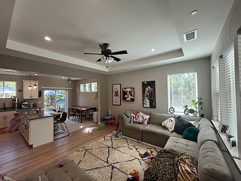 Your private haven in the heart of Rincon Valley! This modern, newly constructed home has 3 bedrooms and 2 bathrooms, a covered front porch, an expansive backyard and is on a 3/4-acre lot down a serene private lane. Loads of privacy in a park-like setting with room for a garden or RV / boat parking. The oversized 2-car garage has room for a workbench/craft area and is bright with large windows providing lots of natural light. Exceptional design, top quality building materials, soaring 9 foot+ coffered ceilings (ceiling fans in every room), open concept floor plan with a great room, large kitchen & breakfast bar which flows through a glass sliding door and extends the entertaining area out to the large backyard patio and turf lawn with exceptional mountain views. The master bedroom also opens up to the backyard patio which has room for a hot tub. Solar system provides energy for electric heating, cooking, brand new laundry machines and car charging at a reduced cost. Water is provided by a well with purification system. Just a short walk to Oliver's shopping center, restaurants, and highly sought after schools & parks! *1 Year Lease or Longer No smoking allowed in home or garage.
