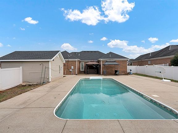 Welcome to your private oasis! This stunning 3 bedroom, 2 bath brick home sits proudly on a spacious corner lot with a heated salt water in-ground pool and hot tub and delivers the perfect blend of comfort, style, and outdoor luxury! Step inside to find real hardwood floors, a warm and inviting fireplace, and a layout designed for both everyday living and entertaining. The home features a formal dining room plus an eat-in kitchen equipped with stainless steel appliances, ample cabinet space, and great natural light. The primary suite includes walk-in closets and a beautifully updated bathroom with a shower seat and rainfall shower head for a spa-like experience. Outside, your backyard becomes a true retreat complete with a heated, saltwater in-ground pool, hot tub, and a fully fenced yard for privacy. Car lovers, hobbyists, or anyone needing extra storage will appreciate the 2-car attached garage PLUS a detached 1-car garage. And this home is eligible for $0 down payment financing!
