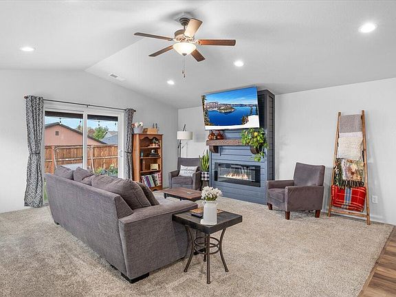 Step into this Beautiful new custom home by Snyder Creek Development! Exceptional craftsmanship and loaded with upgrades, this home offers an open floor plan with a spacious kitchen, granite countertops, custom cabinetry, and upgraded stainless-steel appliances. Primary suite includes dual sinks and a walk-in closet. Features LVP and Carpet throughout, tile flooring in the bathrooms, finished 2-car garage, electrical upgrades, landscaped yard with sprinklers, covered patio, and full fencing. RV Parking is also fenced! Fantastic location close to town and schools. Don't miss your chance to check this out!