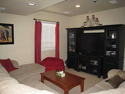 Immensely upgraded stucco home that backs to greenbelt. Great mountain views from the front. A/C. Hardwood floors on most of main level. Eat in kitchen tenders granite counters, stainless steel appliances, pantry & oversized island. Family room w/3 sided fireplace. Hardwood floors in upper hallway. Dual sinks in upper bath. Master offers 5 piece private bath w/jetted tub and walk in closet. 3 secondary bedrooms all on upper level. 2 built-in china cabinets at dining area. 9-ft basement walls in the finished basement.