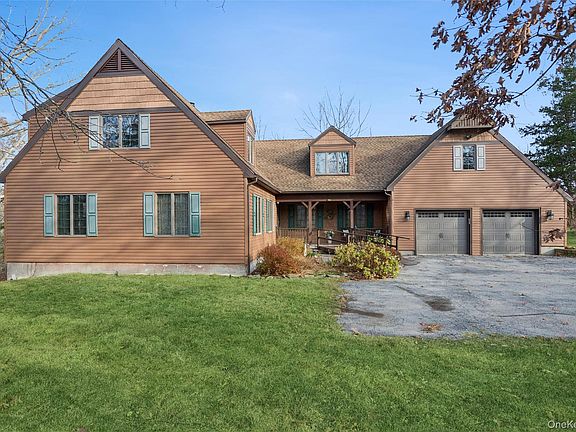 Welcome to this beautifully maintained Cape Cod-style home, set on 7.79 picturesque acres in the scenic town of Pleasant Valley. Offering 2,688 sq. ft. of living space, this home features 3 generously sized bedrooms (lives like 4) and 3 full baths, providing comfort, flexibility, and room to grow. The main level boasts a bright, inviting living room, a formal dining area, a well-appointed kitchen with a walkout to the back deck, and a spacious family room with a fireplace — perfect for relaxing or entertaining. Upstairs, you'll find three bedrooms, including a spacious primary suite complete with a walk-in closet and ample storage. Additional highlights include a 2-car attached garage, paved driveway with plenty of parking, an outdoor shed, and attic space that could be finished to increase the living space. Enjoy the perfect blend of privacy, tranquility, and modern convenience surrounded by the natural beauty of the Hudson Valley. This property offers easy access to local parks, streams, and woodlands, as well as great community amenities, shops, and restaurants. Don’t miss this true Hudson Valley gem!