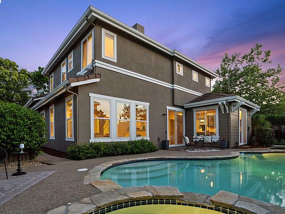 Welcome to this beautifully updated home combining comfort, style & location! Soaring ceilings & natural light fill the open layout w/ formal living room, dining room, & cozy family room. The modern kitchen features granite counters, ss appliances, butcher-block island, ample cabinets, & walk-in pantry. A dedicated laundry room adds daily convenience. 3 spacious bdrms, all w/ walk-in closets & one has charming board & batten detailing for a designer touch. All baths are updated w/ the upstairs hall bath & primary en-suite both including dual vanities. Wood floors run throughout main areas; plush Berber carpet provides soft comfort on stairs & in bdrms. Enjoy your private backyard oasis w/ lush landscaping, an in-ground Gunite pool w/ cascading waterfall spa sets the stage for summer fun. An oversized shed adds flexibility for storage, home office, or creative use. Additional highlights include new interior/exterior paint, finished epoxy garage floor, copper plumbing, ceiling fans, AC, & custom fireplace—this home is move-in ready & thoughtfully upgraded throughout. No HOA fees & prime location near scenic parks, trails, top-rated schools, award-winning wineries, Livermore Premium Outlets, BART, ACE, & hwys 580/680/84—you’ll enjoy perfect blend of comfort, style & convenience.
