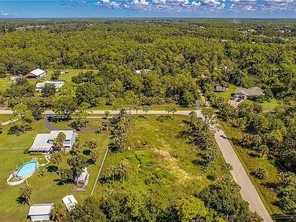 This AG-2 zoned corner acreage lot spans approximately 1.26 acres and is conveniently situated with easy access to I-75, US 41, and Downtown Fort Myers. Additionally, it is in close proximity to various amenities such as shopping centers, gas stations, banks, and restaurants along US 41. The AG-2 zoning also permits the keeping of farm animals, making this corner acreage lot ideal for those seeking an equestrian lifestyle and their dream home.