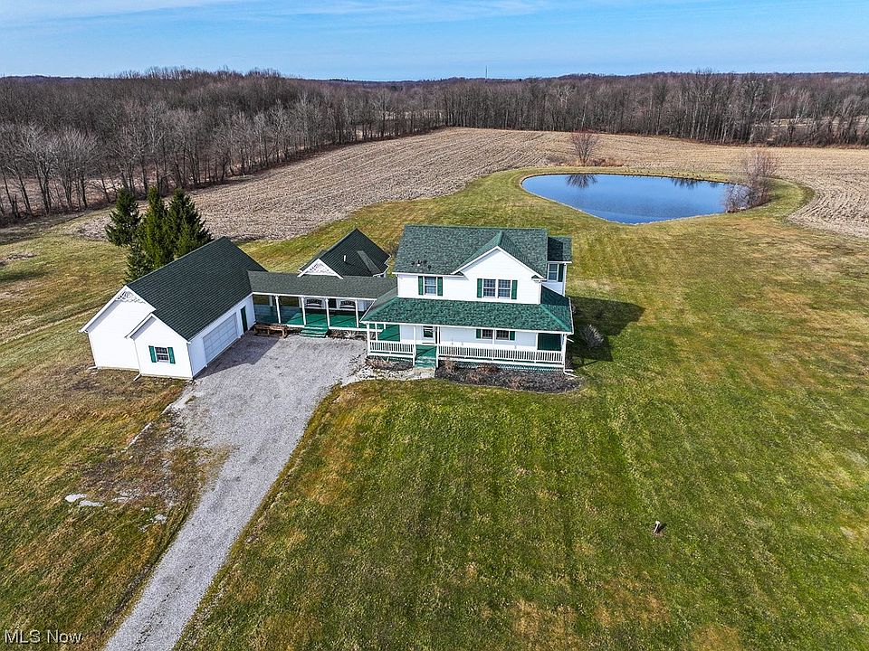 Possibilities galore with this beautiful 6.5 acre property located in Ashtabula's famed covered bridge and winery region. Formerly the Covered Bridge Bed and Breakfast, it is now used as a single-family residence. However it is zoned and could be used again as a B and B. The main house has three bedrooms and three full bathrooms up. A wrap around porch hugs the downstairs main living area. The dining room has a newer deck great for having coffee (and of course sip wine) and enjoying the pond view. The large three season guest house has a gas fireplace, a vaulted ceiling, and a large area which is also used as a bedroom with a full bath. A covered walkway connects the main house, the guest house and the garage. The garage has two doors but is a 2 1/2 car space with lots of extra storage space. Two unique things about this property - one is it has natural gas, and two it can be used as single family or commercial usage. So whatever, your dream is, it may be possible with this property. Two covered bridges within a mile, 7 minutes to route 90, and close to all that Lake Erie and Conneaut offer. And of course a winery in less than a mile as well. Warranty included. Built in 2000. The charming green roof is approximately four years old. The guest house and garage were built in 2005.