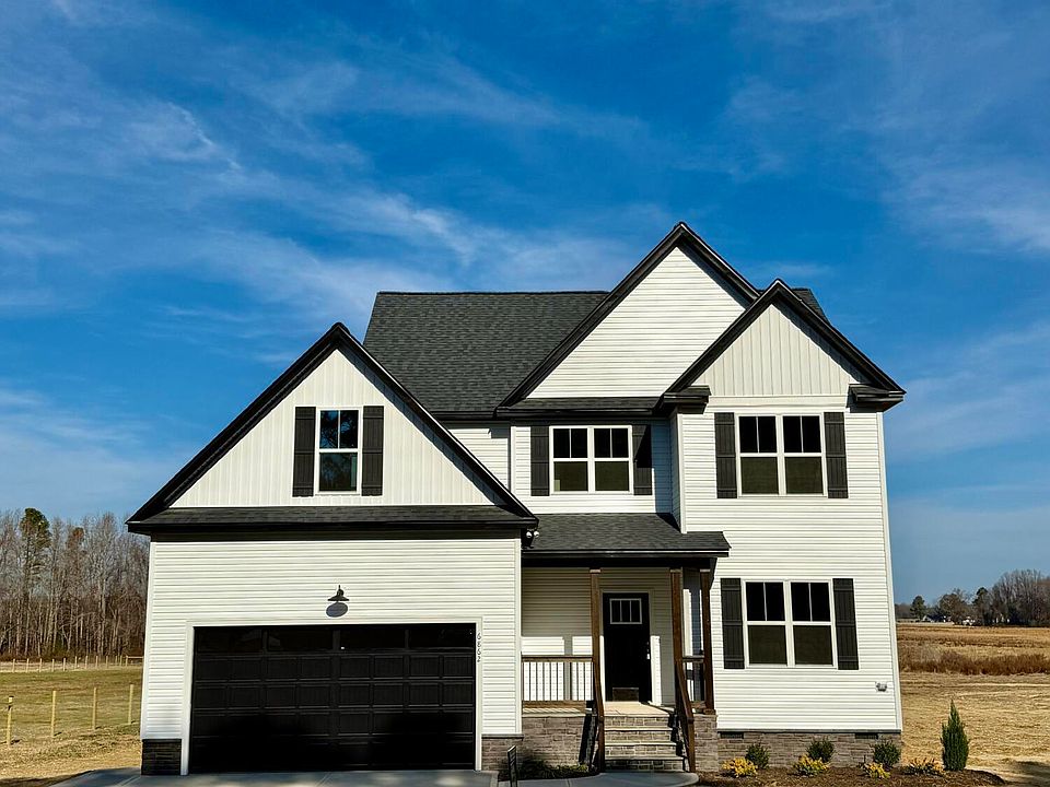 Beautiful Farmhouse-style Home on just over an acre Lot. Unrestricted, and NO HOA! open level lot is over an acre, bring your imagination, and create the oasis you desire. This open-concept floor plan features a Separate Dining Room and a centrally located stairwell. The Family room features a ShipLap FP and an adjoining sunny breakfast nook that overlooks the spacious Deck and expansive backyard—plenty of room for the kids or animals to play. The Kitchen is the Focal point in this home, offering an abundance of cabinets and counter space. Gorgeous Granite and Rich LVP flooring are the back drop for this Beautiful home. The second-floor bedrooms are roomy, and the Primary Suite offers HIS/HERS closets with a well-appointed Bathroom: tiled walk-in Shower and private WC plus Dual Vanity. The Playroom offers a lot of Space and is located above the garage. Don't miss this opportunity! There are only 11 homesites along this secondary Road with easy access to 64E , 264E and 97 HWY. Just 35 minutes to Raleigh and 20 minutes to Wilson, Don't miss these limited opportunities!