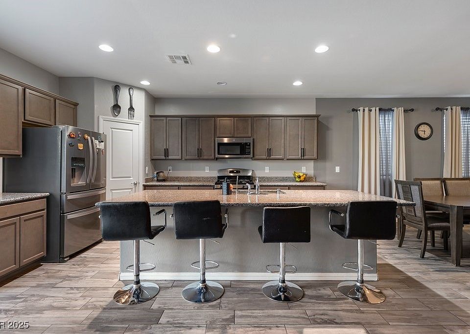 Welcome to this beautifully appointed 4-bedroom, 3-bath home offering 2,801 sq. ft. of living space. Thoughtfully designed, the floor plan features a downstairs bedroom and full bath, along with a huge upstairs loft for added flexibility. A beautiful chef’s kitchen, complete with a massive island, sleek finishes, and gorgeous wood-like tile flooring on the main level. The spacious living room is wired for surround sound.
